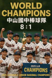2025 年 8 月 10 日,來自台中市的中山國中棒球隊,在美國密西根州泰勒市(Taylor, Michigan)舉行的 Junior League 棒球世界賽 中,以出色的團隊表現擊敗來自世界各地的強勁對手,成功奪得冠軍,為台灣棒球再添一座國際榮耀。
